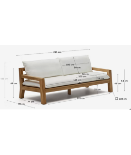 Faszinierender und eleganter Landhausstil für diesen Sofa mit Gestell aus massivem Teakholz und mit bequemen Kissen aus wasserabweisendem Stoff und abnehmbaren Bezügen, um zusätzlichen Komfort zu gewährleisten. Bequem und angenehm. Ideal zum Kombinieren mit den anderen Accessoires der gleichen Linie, um sowohl drinnen als auch draußen stilvoll einzurichten. Wunderbar für Zuhause oder Hotels, B & B, Bauernhäuser.