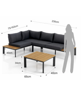 BACARD Eckset 230x163 cm aus Aluminium und Eichenfinish und inklusive Kissen für Innen oder Außengartenterrassen