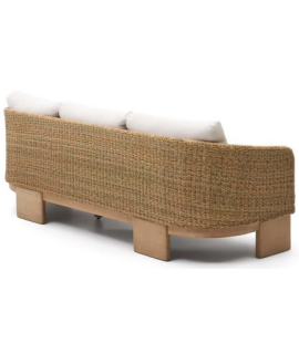AMAR 3-Sitzer-Sofa 220 cm aus massivem Eukalyptusholz und synthetischem Rattan und abnehmbaren Kissen für drinnen und draußen