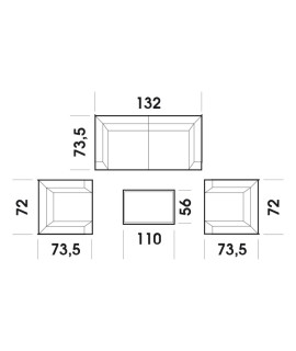 - divano 2 posti 132 / poltrone 72 / tavolino 110