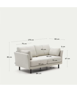 FERES 2-Sitzer-Sofa 170 cm mit Füßen aus schwarzem holz und Kissen mit abnehmbaren, schmutzabweisenden Stoffbezügen