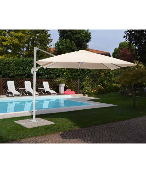 BAIA Regenschirm 300x300 aus weißem Aluminium und sandfarbenem Stoff
