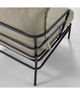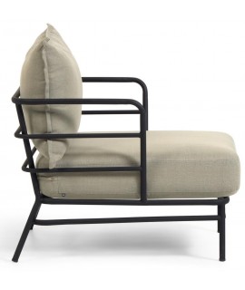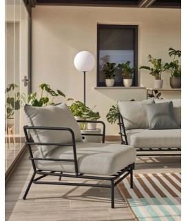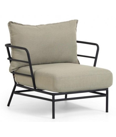 Klare und frische Linien für diesen Sessel, der für den Außenbereich geeignet ist. Vielseitig und raffiniert, mit extrem widerstandsfähiger schwarz lackierter Stahlstruktur und wasserabweisenden Stoffkissen. Mit einem essentiellen Design verleiht es Helligkeit und Schönheit, ideal, um Ihre Außenbereiche mit Stil zu dekorieren und die Natur in Ihrem Garten oder auf Ihrer Terrasse bequem zu genießen.