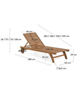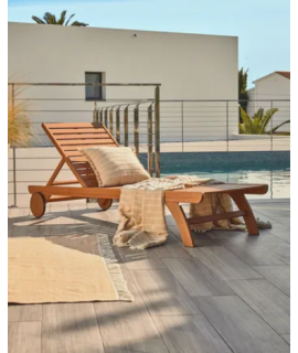 Elegant und raffiniert, die Sonnenliege aus massivem Akazienholz. Bequem mit Rädern können Sie es einfach platzieren, wo immer Sie wollen, für Ihre Momente der Entspannung. Rückenlehne in 4 Positionen verstellbar. Wunderbar, um Ihren Garten oder Ihre Terrasse zu verschönern, bezaubernd am Pool.