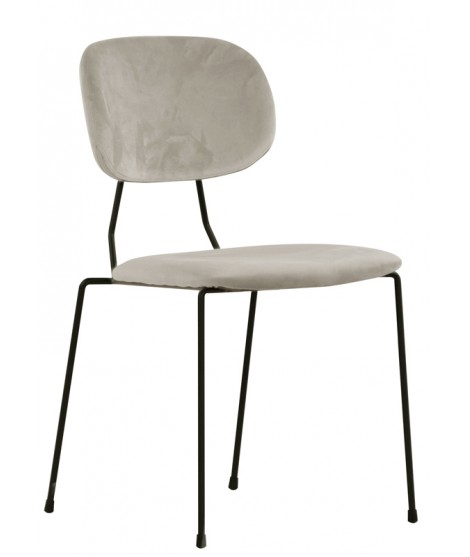Schöner Stuhl mit attraktivem 80er Jahre Design, sehr raffiniert und elegant. Ein Stuhl, der mit der Tradition verbunden ist, aber ein frischeres und innovativeres Image verleiht, mit einer raffinierten Struktur aus schwarzes Metall und Sitz und Rückenlehne in Samtfarbe nach Wahl. Sehr bequem.