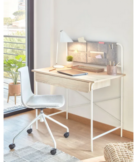 MELA Schreibtisch 100x62 cm aus weißem Metall und Melamin aus natürlichem Holz