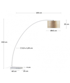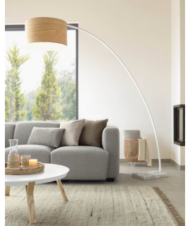 Faszinierende Stehlampe mit weißem Metallstab, weißem Marmorsockel und besonderem Lampenschirm aus Eschenholz. Elegant und fesselnd, raffiniert und faszinierend, das Licht, das sie ausstrahlt, und die Atmosphäre, die sie schafft, sind wunderschön. Für ein Zuhause im zeitgenössischen oder klassischen Stil ist es dank der klaren und Designlinie perfekt, um jede Umgebung geschmackvoll einzurichten, auch geeignet für Büros oder professionelle Studios.