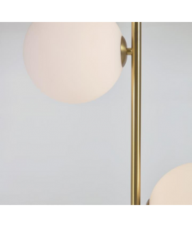 SKIFT Stehlampe aus goldfarbenem Metall und grünem Marmor und 2 satinierten Glaskugeln