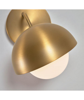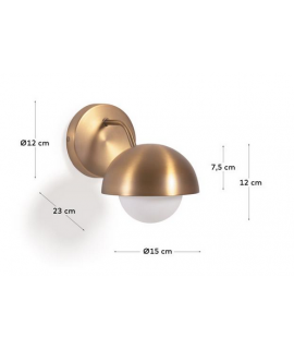 Schöne und ausgefallene Applikationslampe aus goldfarbenem Metall und satinierter Glaskugel. Raffiniert und geradlinig. Beleuchtung für G9 max. 28W Lampe (NICHT INBEGRIFFEN) mit niedrigem Verbrauch oder Energiespartyp, LED oder die historische Glühlampe. Auf dem Foto des Datenblatts sind alle Maßnahmen aufgeführt.