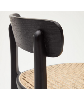 BENFIT Hocker 76 cm hoher aus schwarzem Buchenholz und Rattan