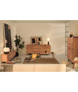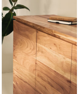 Faszinierende Linie für dieses elegante und repräsentative Sideboard. Aus massivem Akazienholz mit natürlichen Maserungen, die dieses Möbelstück zu einem einzigartigen Stück machen, das Wesentlichkeit und Raffinesse ausstrahlt. Ein wunderbares Möbelstück, das Helligkeit auf die Umgebung überträgt.