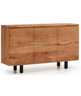 Faszinierendes und besonderes Sideboard mit 3 Türen mit verstellbaren Führungen mit Soft-Closing-Verschluss, es ist sehr geräumig, aus massivem Akazienholz mit natürlichem Finish und schwarzen Metallfüßen mit Reglern. Fantasievoll und raffiniert, grobkörnig und dynamisch, die sich auf Praktikabilität und elegantes Design konzentriert. Unten finden Sie die passenden Ergänzungen der gleichen Linie. Alle Maße auf dem Foto des technischen Datenblatts durch Scrollen mit dem Pfeil in den Fotos.