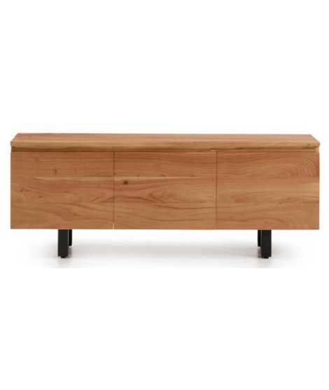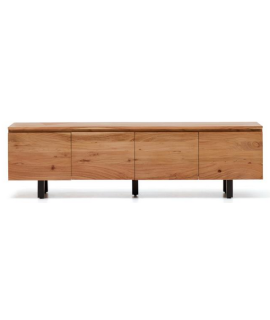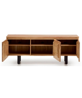 Faszinierende Linie für dieses elegante und repräsentative TV-Schrank. Aus massivem Akazienholz mit natürlichen Maserungen, die dieses Möbelstück zu einem einzigartigen Stück machen, das Wesentlichkeit und Raffinesse ausstrahlt. Ein wunderbares Möbelstück, das Helligkeit auf die Umgebung überträgt.