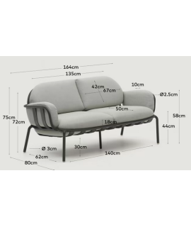 MATER 165 cm in grauem Aluminium und Kissen aus waschbarem abnehmbarem wasserabweisendem Stoff 2 Sitzer Sofa