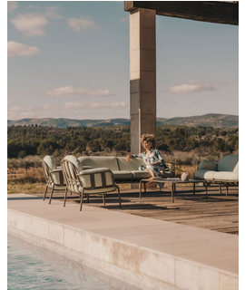 Modernes 3-Sitzer-Sofa, geeignet für den Innen- und Außenbereich. Raffiniert und faszinierend, in seiner Wesentlichkeit aktuell und faszinierend. Es wird der unbestrittene Star Ihrer Einrichtung sein. Eine klare und frische Linie mit einer wichtigen taubengrünem Aluminiumstruktur, sehr widerstandsfähig gegen schlechtes Wetter und UV-Strahlen und mit einem wertvollen abnehmbaren und maschinenwaschbaren Stoffbezug. Ein 3-Sitzer-Sofa, das wunderschön dekoriert ist und Sie können es mit den anderen Elementen derselben Linie kombinieren, die Sie unten finden.