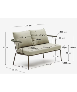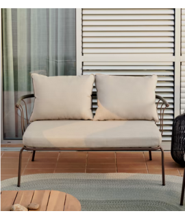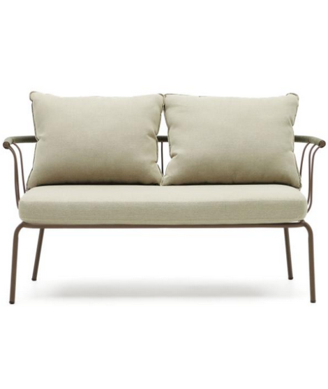Modernes 2-Sitzer-Sofa, geeignet für den Innen- und Außenbereich. Raffiniert und faszinierend, in seiner Wesentlichkeit aktuell und faszinierend. Eine einfache Linie mit einer wichtigen Struktur aus braunem Stahl und Details aus grünem Seil, mit Kissen aus abnehmbarem Stoff. Ein 2-Sitzer-Sofa, das wunderschön dekoriert und mit den anderen Elementen derselben Linie kombiniert werden kann, die Sie unten finden.