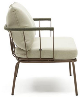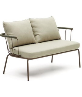 Bequemes und raffiniertes kleines und gemütliches Sofa, geeignet für den Innen- und Außenbereich. Struktur aus abgerundetem Rohr aus braunem Stahl und Verarbeitung aus grünem Seil. Polyurethan-Polsterung mit gestütztem Sitz und abnehmbarem Stoffbezug, der in der Maschine kalt gewaschen werden kann. Maximale Kapazität 200 Kg. Unten finden Sie alle passenden Zubehörteile der gleichen Linie. Alle Maße sind auf dem Foto des technischen Datenblatts.