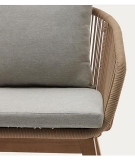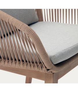 ABREN Stuhl mit Armlehnen aus massivem Akazienholz mit Seil bezogen und abnehmbaren Kissen für den Außenbereich