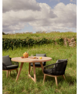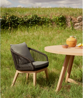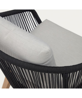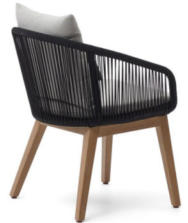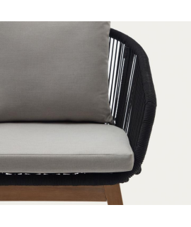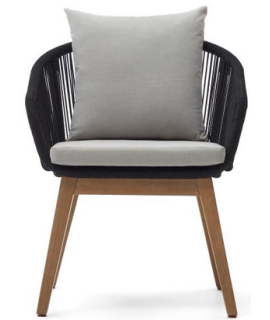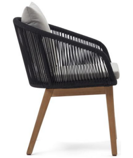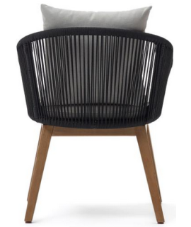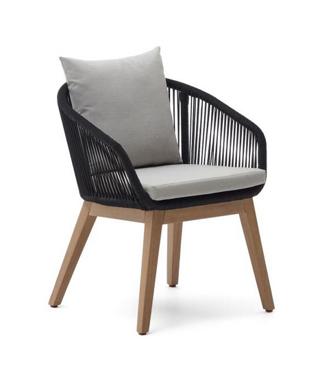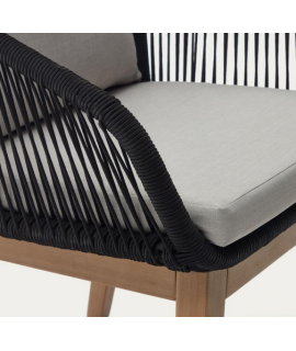 CLOUL Stuhl mit Armlehnen aus massivem Akazienholz mit Seil bezogen und abnehmbaren Kissen für den Außenbereich