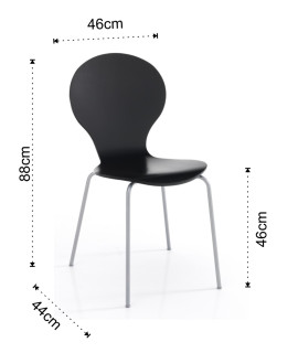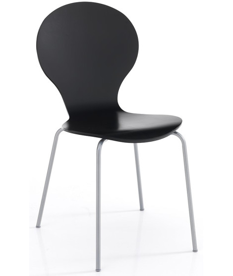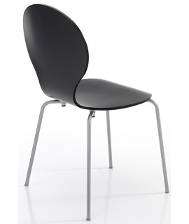 Moderner und junger Stuhl. Hergestellt aus Schwarz lackierter Holzschale und Metallbeinen mit Aluminium-Finish. Mit hoher Rückenlehne. Schön und grobkörnig eignet es sich für viele Räume im Haus und für den Objektbereich. Auf dem Foto des technischen Datenblattes sind alle Maße aufgeführt.