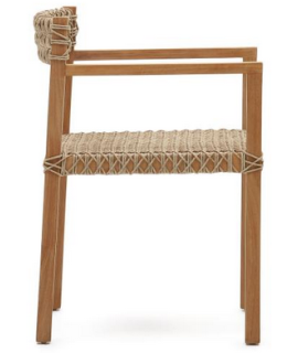 CHIN Stuhl mit Armlehnen aus massivem Teakholz und Seil für den Außenbereich