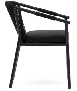 Angenehmer Outdoor-Stuhl mit Armlehnen, modern und Design, nüchtern und fantasievoll. Die besondere Verarbeitung aus gewebtem Polyesterseil und Aluminiumstruktur macht es schön und widerstandsfähig. Mit bequemem Sitzkissen aus wasserabweisendem und abnehmbarem Stoff. Erhältlich in den Farben: Beige oder Schwarz. Auf dem Foto des technischen Datenblatts sind alle Maße angegeben. Nachfolgend finden Sie die passende Tabelle.