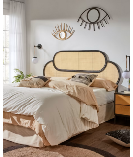 TRAVER Kopfteil für Doppelbett 160 cm im rustikalen Kolonialstil aus natürlichem Rattan