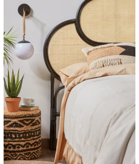 Ein wunderbares rustikales Kolonialgenre für dieses Rattan-Doppelbett-Kopfteil. Es sieht aus wie ein Möbelstück, das in einem alten verlassenen Landhaus gefunden wurde. Eine fabelhafte Mischung aus Retro-Linien und zeitgenössischer Wesentlichkeit. Für diejenigen, die einfache Dinge mit einem exotischen Geschmack lieben und reich an Natürlichkeit und Echtheit sind.