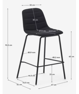 Geeignet für jede Art von Möbeln. Eleganter und raffinierter Hocker, aber neben dem Design auch sehr bequem mit hoher Rückenlehne und bequemer Sitzfläche. Von großem Prestige und Solidität, mit weicher, trendiger Chenille-Polsterung, dunkelgrünem oder schwarzem Farbe und schwarzen Metallbeinen. Maximale Tragfähigkeit 130 kg. Auf dem Foto des technischen Datenblattes sind alle Maße aufgeführt.