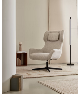 MULDAR Drehsessel aus Chenille nach Wahl und schwarzem Stahl