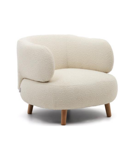 Mit einem einzigartigen und faszinierenden Design ist es ein sehr trendiger Sessel mit einer raffinierten und einzigartigen Linie. Ideal für Ihre Momente der Entspannung, mit seinen entspannenden Linien ist es komfortabel und einladend, gleichzeitig sehr raffiniert. Elegant mit shearling Stoff und Füßen aus Naturholz. Schön in jeder Umgebung, von klassisch bis modern.