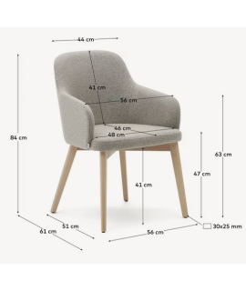 Schöner und sehr bequemer Stuhl mit Armlehnen mit schlichter Designlinie. Um Ihre Räume mit Geschmack einzurichten und sie zu einem Meisterwerk zu machen. Mit solider Struktur aus massivem Buchenholz, natürliches-Finish, bequemer Polsterung und wunderschönem Chenille-Bezug. Raffiniert und besonders, verleiht es der Atmosphäre, in der es untergebracht ist, eine warme und einladende Atmosphäre.