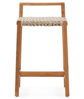 CHIN Hockersitzhöhe 67 cm aus massivem Teakholz und Seil für den Außenbereich