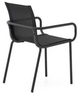 Stuhl mit Armlehnen mit Struktur aus lackiertem Aluminium und Textilene für Sitz und Rückenlehne, erhältlich in den Farben: Schwarz oder Weiß. Perfekt für Haus, Garten, Balkon oder Terrasse, aber auch für Contract, Bars, Cafés, Residenzen, Restaurants, Clubs am Wasser, Hotels, B & Bs, Badeanstalten. Ideal für Ihre Außenbereiche. Einfach und raffiniert. Stapelbar. Siehe unten die anderen Zubehörteile, die mit derselben Linie kombiniert werden können. Alle Maße sind auf dem Foto des Datenblattes.