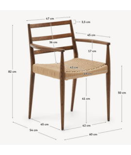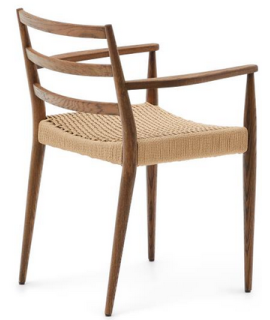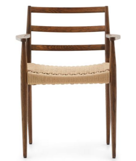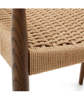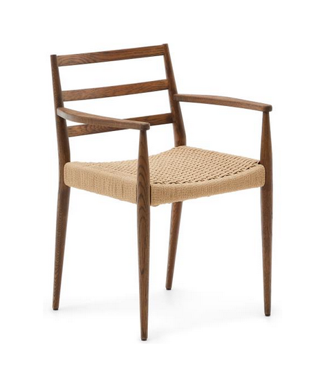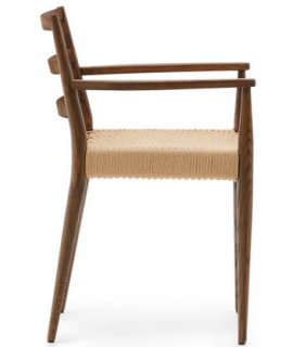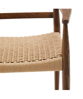 RESORT Stuhl mit Armlehnen aus massiver Eiche und Walnuss-Finish und Sitz aus Seil