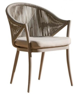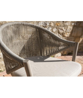 ALESTER Set aus 2 Sesseln und 1 weißen oder taubengrauen Tisch aus Aluminium Seil und Sitzkissen inklusive