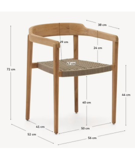 GIOVE Stuhl mit Armlehnen aus massivem Teakholz und Seil für den Außenbereich