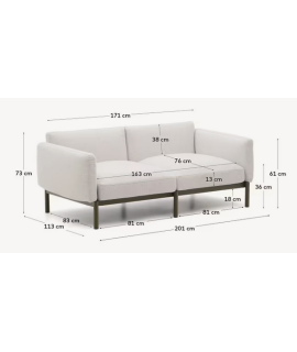 Bequemer und raffinierter Sofa, geeignet für den Außen- oder Innenbereich dank der praktischen Anwendbarkeit der Materialien, aus denen er hergestellt wird. Leichte Aluminiumstruktur, hergestellt in lokalen Werkstätten, reduziert die CO2-Emissionen für eine geringere Umweltbelastung. Polyurethan-Polsterung mit gestütztem Sitz und maschinenwasch Stoffbezug. Maximale Belastung 200 Kg. Nachfolgend finden Sie alle passenden Zubehörteile der gleichen Linie. Alle Maße sind auf dem Foto des technischen Datenblatts.
