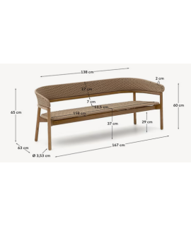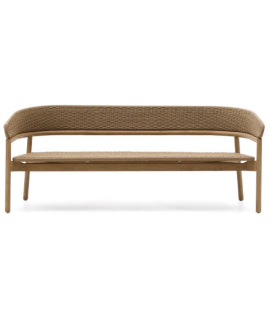 Fabelhafter Sofa mit Rahmen aus massivem Akazienholz, natürliches Finish, behandelt mit PNZ-Öl für lange Lebensdauer und UV-Schutz und handgeflochtenem Polyesterseil, beständig gegen UV-Strahlen und Witterungseinflüsse. Jedes Stück vereint die Noblesse von massivem Akazienholz mit einer gebürsteten Oberfläche, die die natürlichen Töne und die einzigartige Maserung hervorhebt und jedes Stück einzigartig macht. Auf dem Foto des technischen Datenblatts sind alle Maße zu sehen, wenn Sie mit den Pfeilen scrollen. Nachfolgend finden Sie die Ergänzungen derselben Zeile.