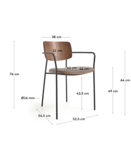 GUSTO Stapelbarer Stuhl mit Armlehnen aus Walnussfurnier und Schwarz Metallbeinen
