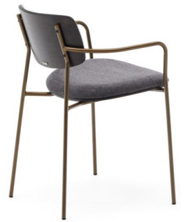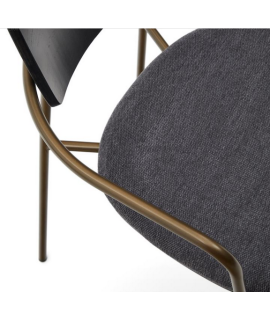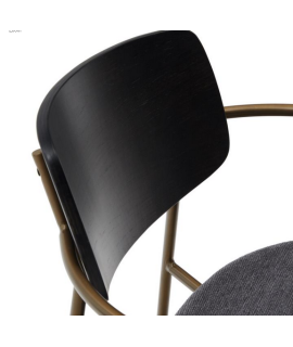 BANTY Stapelbarer Stuhl mit Armlehnen aus Dunkles Eschenfurnier und messingfarbenes Metall