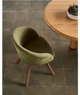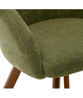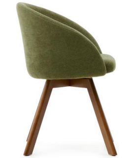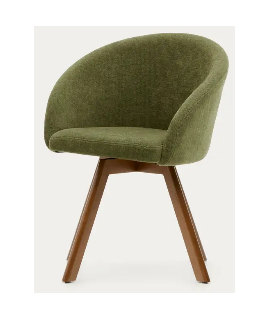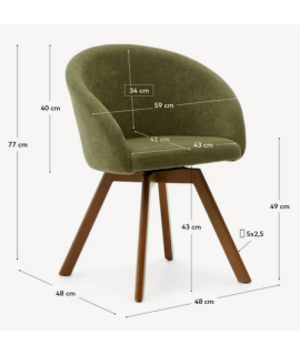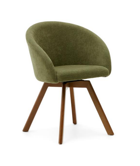 Schöner Stuhl mit Armlehnen, hergestellt mit stützender und sehr bequemer Polsterung mit drehbarem Sitz, mit massiver Buche mit Walnuss-Finish und Polsterung aus Chenille-Stoff, Farbe wählbar: braun oder grün. Eleganz und Komfort für Zuhause, Esszimmer oder Vertragsräume, Büros, professionelle Studios, Banken oder Hotels. Beine mit Kunststoffeinlagen zum Schutz des Bodens. Auf dem Foto des technischen Datenblattes sind alle Maße aufgeführt.