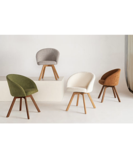 TYPE Drehstuhl mit Armlehnen aus Chenille-Stoff Farbe nach Wahl und Beinen aus massiver Buche Walnuss-Finish