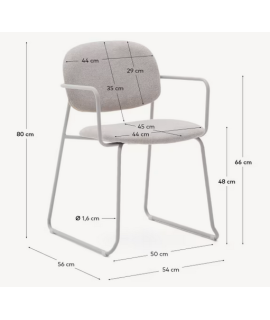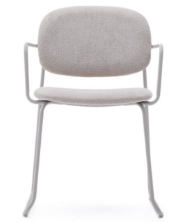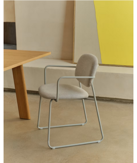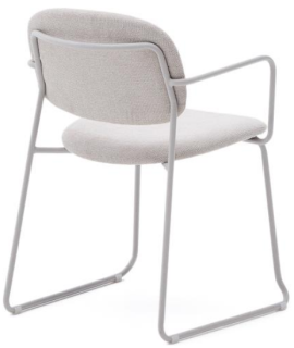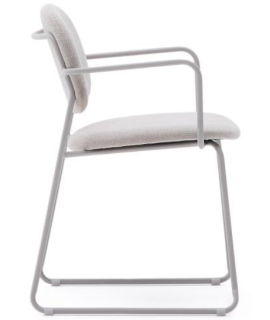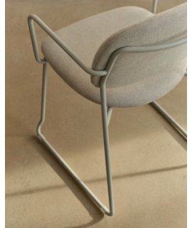 Schöner und raffinierter Stuhl, der mit seinem Schlittendesign einen Hauch von zeitlosem Charme verleiht. Gepolstert und mit Chenille-Stoff bezogen und mit lackierten Metallbeinen. Sehr bequem und elegant, ein charmanter Stil, der sich durch sein leichtes und zeitgenössisches Design auszeichnet.