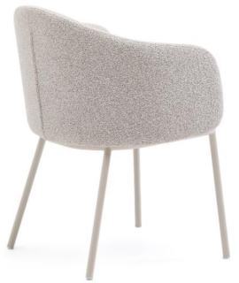 KIMO Stuhl mit Armlehnen aus beigen Chenille und beigen Metallbeinen Designer Sessel