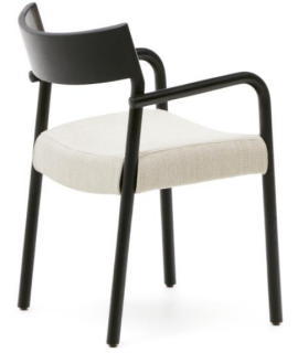DINAGAT Stuhl mit Armlehnen mit abnehmbarem Bezug aus beigem Chenille und massivem Eichenholz mit schwarzem Finish