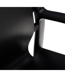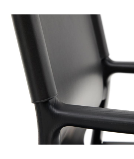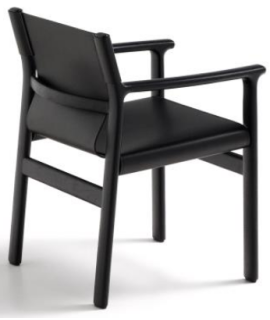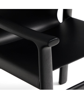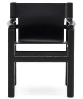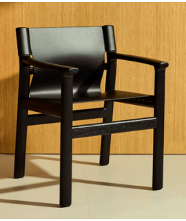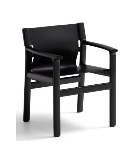 RAMONA Stuhl mit Armlehnen aus massivem Eschenholz mit schwarzem Finish und natürlichem schwarzem Leder