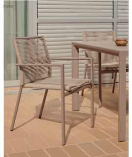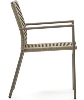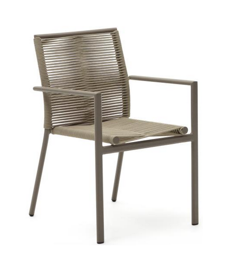 BATED Stuhl mit Armlehnen in Seil und braunem Aluminiumdesign für den Garten oder die Terrasse Hausbar Eisdiele stapelbar