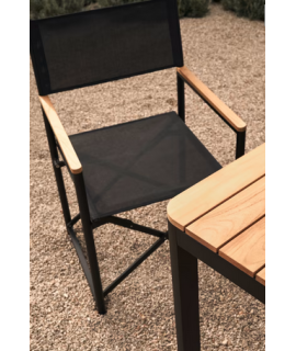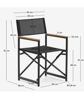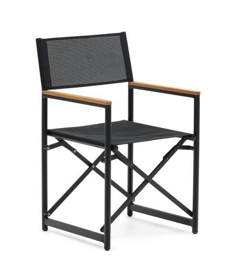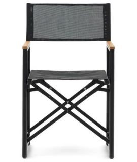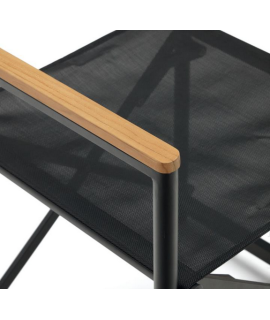 Klappstuhl aus lackiertem Aluminium, Armlehnen aus Teakholz und Textilene für Sitz und Rückenlehne, erhältlich in den Farben: Schwarz oder Weiß. Perfekt für Bars, Cafés, Residenzen, Restaurants, Veranstaltungsorte am Wasser, Hotels, Pensionen und Badeanstalten. Ideal für Ihre Außenbereiche, Ihren Garten oder Ihre Terrasse. Einfach und raffiniert.
