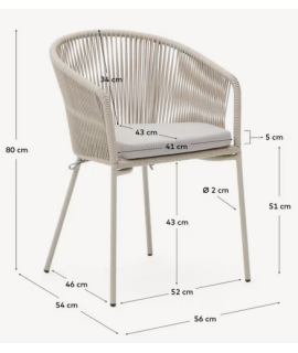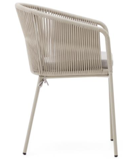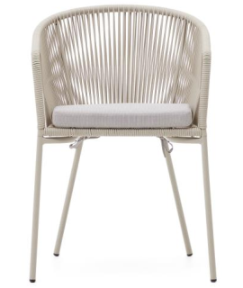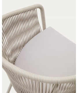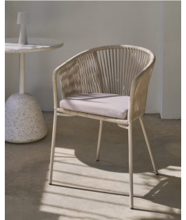 ATENE aus ecrufarbenem Kunststoffseil mit Beinen aus verzinktem Stahl und Sitzkissen für Stuhl mit Armlehnen